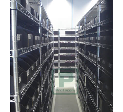A Pratecom utiliza metais de alta qualidade em sua fabricação própria, o que garante prateleiras robustas e seguras para o uso industrial.